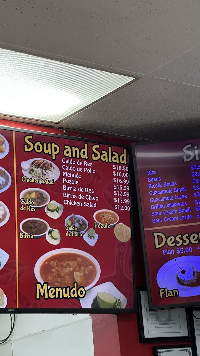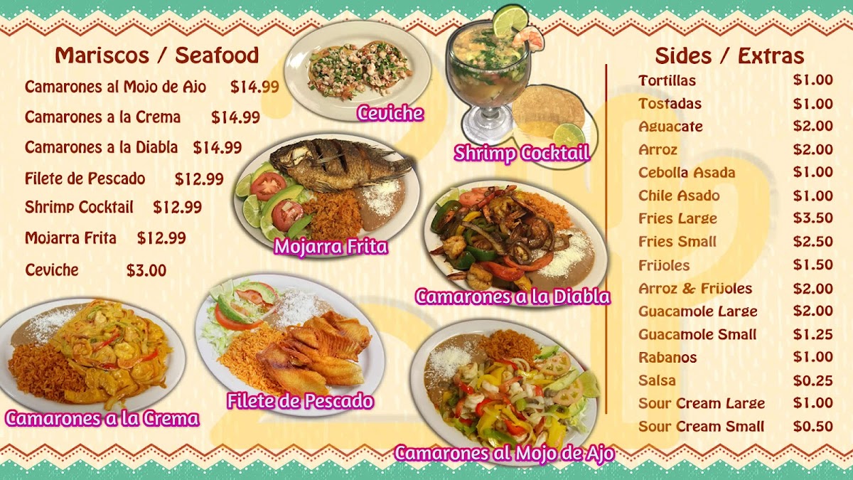 Seafood aficionados will appreciate the Seafood Soup Combination, a robust medley of the ocean’s finest, excellently complemented by the flexibility of choosing between corn or flour tortillas, available for $17. And for those who delight in fresh, cold flavors, the Ceviche at $3.50 is a must-try, perfect for a light snack or appetizer.